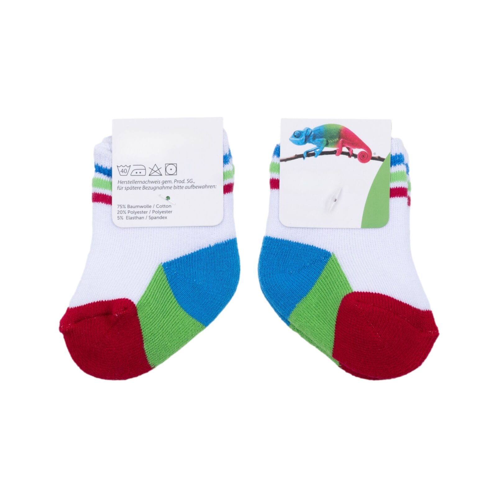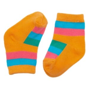 Extra grip for crawling and first steps. Comfortable cotton with cheerful patterns and friendly branding.