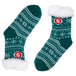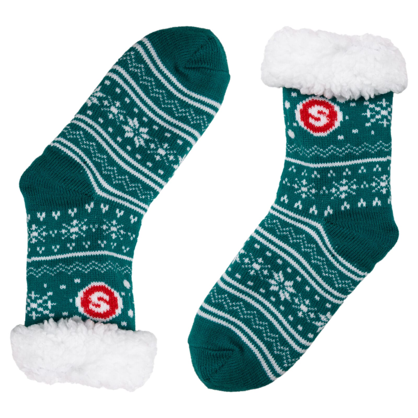 Warm house socks with non-slip studs. Safe and soft - ideal for home, hospitality and winter campaigns. Personalize with pattern, color and label. Available with gift box.