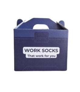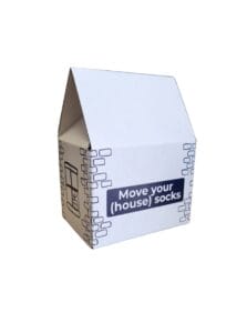 Cardboard banding (also in FSC variant) with logo, message or QR to landing page. Makes each pair retail-ready.